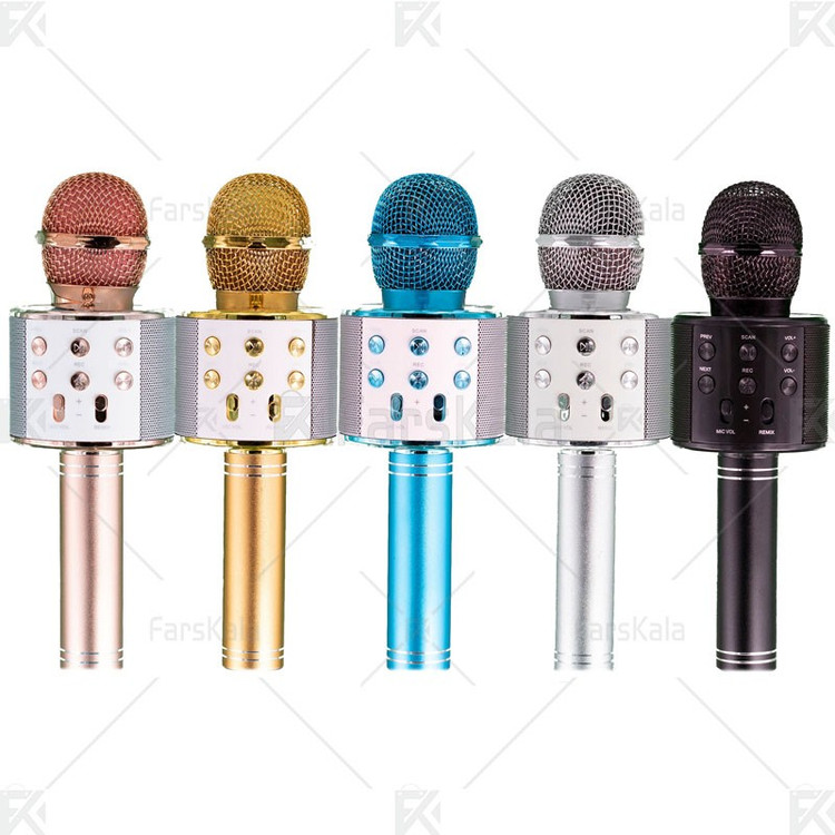 دیدن محصولات مرتبطمیکروفون اسپیکر مدل WS-858 یک میکروفون همه کاره با قابلیت اتصال بی سیم (بلوتوثی) و باسیم به تلفن های هوشمند اندروید و IOS ، انواع پلیرها و کامپیوتر می باشد. این دستگاه از جنس بهترین مواد ABS و آلومینیوم ساخته شده است . به طور خلاصه می توان امکانات این میکروفون را به این صورت نام برد: بلوتوث نسخه 3, ,ورودی حافظه فلش یا USB ، شیار مخصوص به کارت حافظه، دارای پورت AUX، باتری لیتیومی قابل شارژ ، رادیو، دکمه های تنظیم صدا، ضبط صدا، کارائوکه، 4 حالت تغییر صدا , اسپیکر های قدرتمند و ....