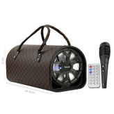 اتصال بی سیم از طریق بلوتوث با برد ۱۰ متر و اتصال باسیم از طریق رابط جک ۳٫۵ میلی متری صدا بهره مندی از ورودی میکروفن برای اتصال میکروفن همراه و استفاده در حالت کارائوک پشتیبانی از حافظه رم میکرو SD و فلش مموری USB، سایز ووفر برابربا ۸ اینچ دارای کلیدهای فیزیکی جهت روشن و خاموش کردن دستگاه، مدیریت موسیقی و … برخورداری از نمایشگر LED و نورپردازی زیبا، به همراه ریموت کنترل جهت مدیریت دستگاه از فاصله ی دورتر بدنه ساخته شده از پلاستیک و چرم مصنوعی در رنگ و طرح های متنوع، دارای بند جهت حمل آسان به همراه میکروفون و کابل مخصوص، با پشتیبانی از قابلیت کارائوکه جهت هم خوانی با موزیک نحوه شارژ توسط پورت MicroUSB و کابل همراه، دارای استاندارد های CE, FCC, RoSH
