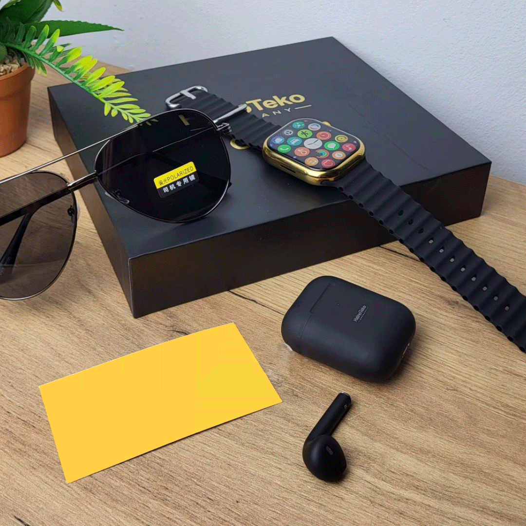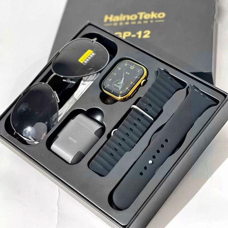دیدن محصولات مرتبطساعت هوشمند هاینو تکو یه پک کامل ساعت می باشد. این پک شامل یک عدد عینک آفتابی ریبن، یک عدد ایرپاد وایرلس، یک عدد ساعت هوشمند با بدنه طلایی و هچنین دو بند اضافه است.ساعت هوشمند داخل این پک،های کپی درجه یک اپل واچ سری 8 میباشد که دارای تمامی سنسوری های سلامتی،امکان دریافت اعلانات پیام ها و شبکه های اجتماعی،صفحه نمایش فول اسکرین2.2 اینچی،برنامه احتصاصی Haino fit و سایر امکانات میباشد.